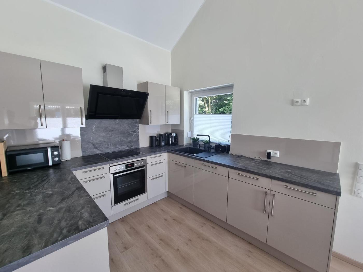 Ferienhaus. The well-fitted kitchen features a stovetop, a refrigerator, a dishwasher and kitchenware. The holiday home offers a washing machine, a private entrance, a terrace with garden views as well as a shared bathroom featuring a shower. The unit offers 2 beds.