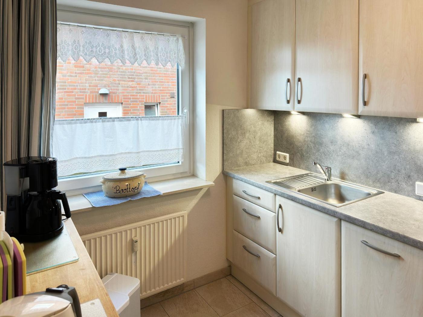 Apartment mit Terrasse. This apartment comes with 1 living room, 1 separate bedroom and 1 bathroom with a shower. Meals can be prepared in the well-fitted kitchen, which features a stovetop, a refrigerator, a dishwasher and kitchenware. Boasting a terrace, this apartment also features a washing machine, a coffee machine and a TV with satellite channels. The unit has 2 beds.