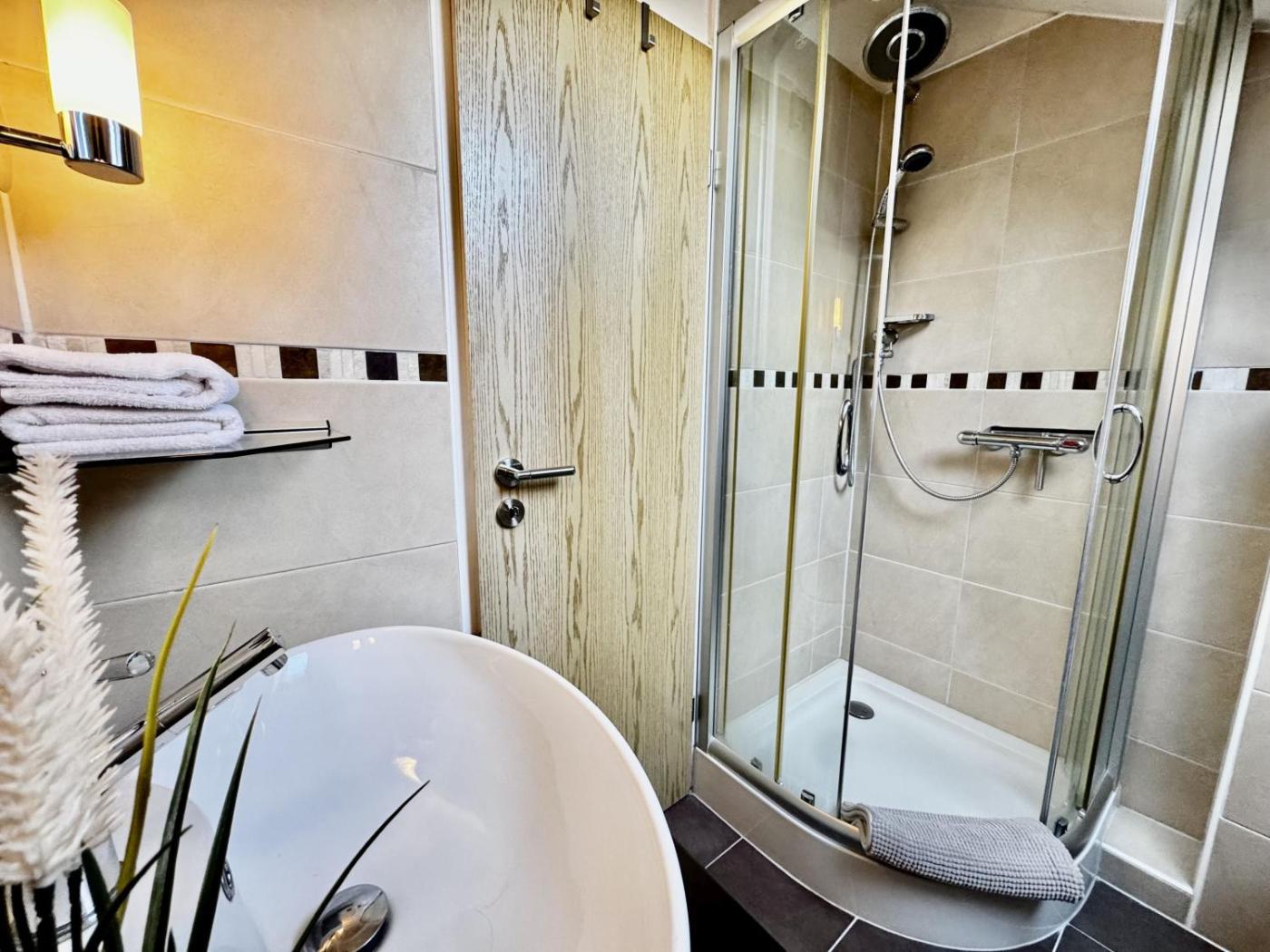 Apartment mit Balkon. This apartment is comprised of 1 living room, 1 separate bedroom and 1 bathroom with a shower and a hairdryer. Meals can be prepared in the kitchen, which is fitted with a stovetop, a refrigerator, a dishwasher and kitchenware. This apartment features a coffee machine, a seating area, a TV and a balcony. The unit offers 2 beds.
