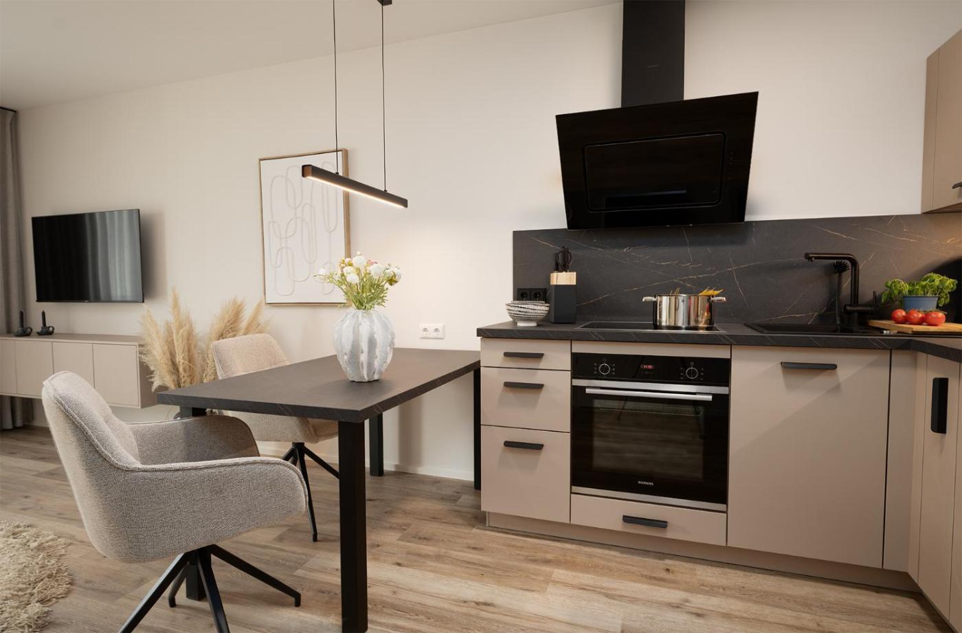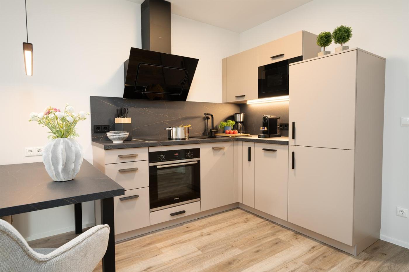 In jeder Wohneinheit gibt es eine voll ausgestattete Küche mit einem Esstisch, einen Flachbild-TV mit Satellitenkanälen sowie ein eigenes Badezimmer mit einer Dusche, kostenlosen Pflegeprodukten und einem Haartrockner. Es gibt einen Kühlschrank, einen Geschirrspüler und einen Ofen sowie eine Kaffeemaschine und einen Wasserkocher.
