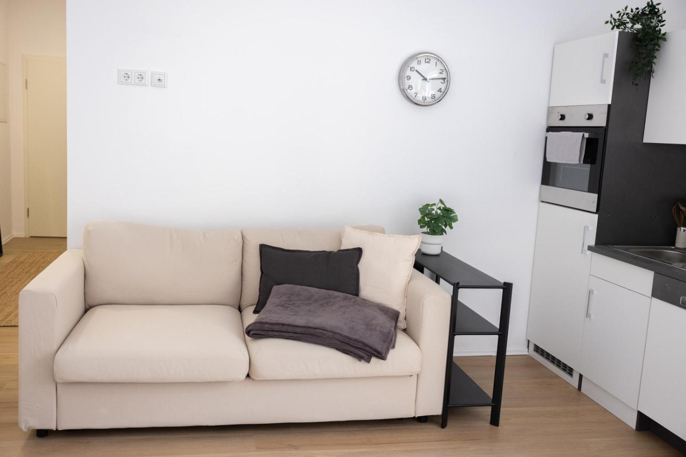 Studio. The studio offers a washing machine and heating, as well as a private bathroom featuring a shower. The studios kitchenette is available for cooking and storing food. This studio provides a flat-screen TV. The unit offers 2 beds.