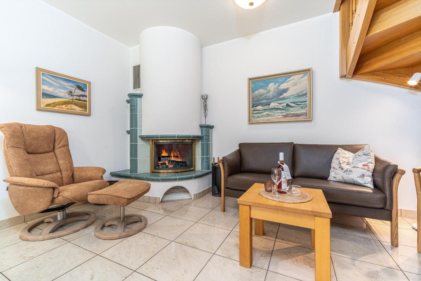 Apartment mit Meerblick. This apartments standout features are the sauna and fireplace. Featuring 3 bedrooms, this spacious apartment offers 3 bathrooms with a shower, a seating area and terraceyou can relax. In the fully equipped kitchen, guests will find a stovetop, a refrigerator, a dishwasher and kitchenware. Boasting a balcony with sea views, this apartment also offers a washing machine and a TV with satellite channels. The unit has 3 beds.