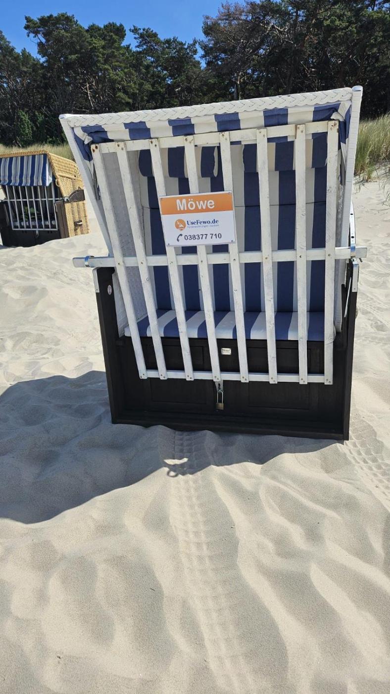 Sehen den Preis anFotos Ferienwohnung Möwe mit Balkon, ein Strandkorb im Sommer und 2 Fahrräder