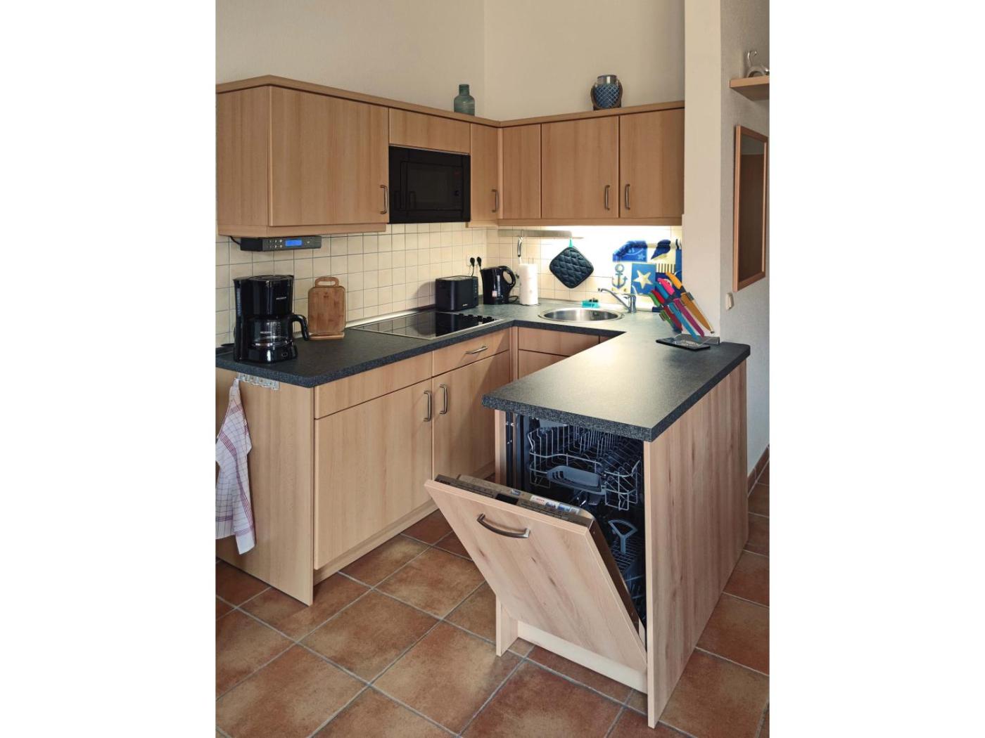Apartment mit Meerblick. This apartment comes with a kitchen, a seating area, 1 separate bedroom and 1 bathroom with a shower and a hairdryer. Guests can make meals in the kitchen that features a stovetop, a refrigerator, a dishwasher and kitchenware. Boasting a balcony with sea views, this apartment also features a washing machine and a TV. The unit has 2 beds.