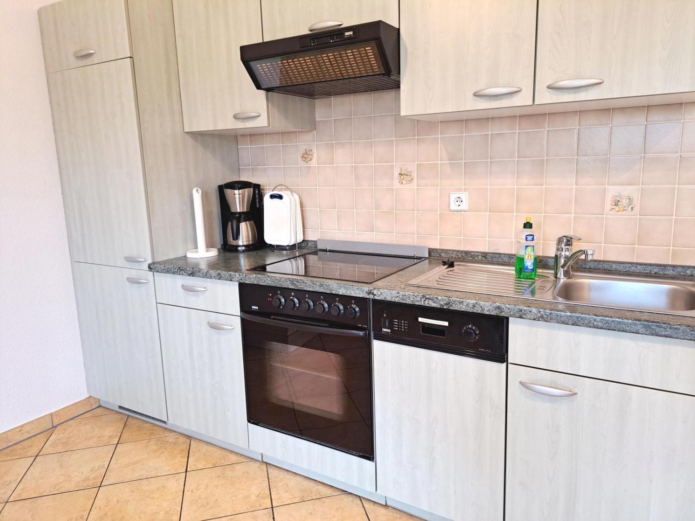 Apartment mit Terrasse. This apartment comprises 1 living room, 1 separate bedroom and 1 bathroom with a shower. The well-fitted kitchen features a stovetop, a refrigerator, a dishwasher and kitchenware. This apartment has a washing machine, a coffee machine, a TV and a terrace. The unit offers 2 beds.