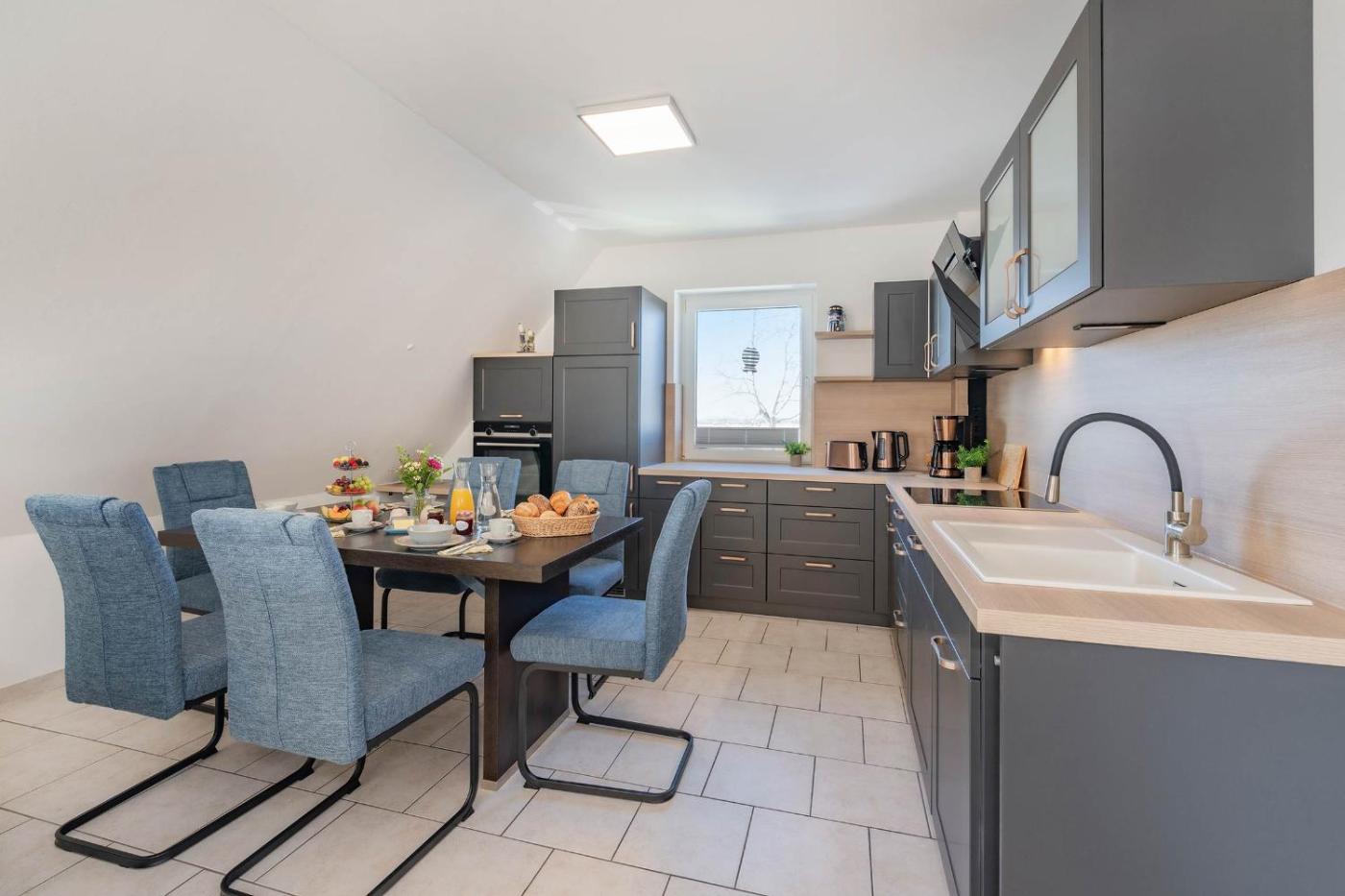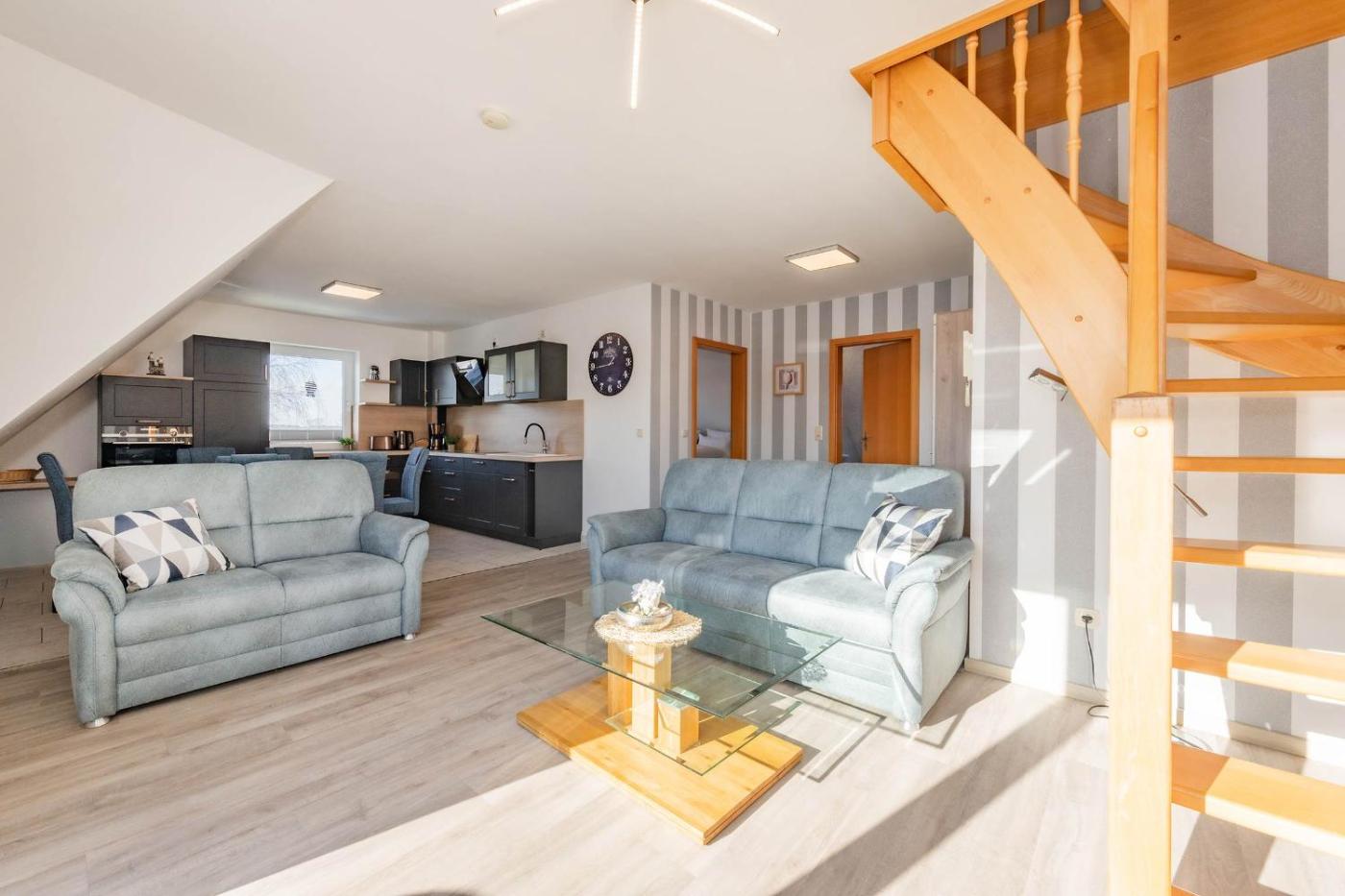 Apartment mit Balkon. This spacious apartment is comprised of a kitchen, a seating area, 3 separate bedrooms and 1 bathroom with a shower and a hairdryer. In the kitchen, guests will find a stovetop, a refrigerator, a dishwasher and kitchenware. This apartment features a coffee machine, a wardrobe, a flat-screen TV with cable channels and a balcony. The unit offers 3 beds.